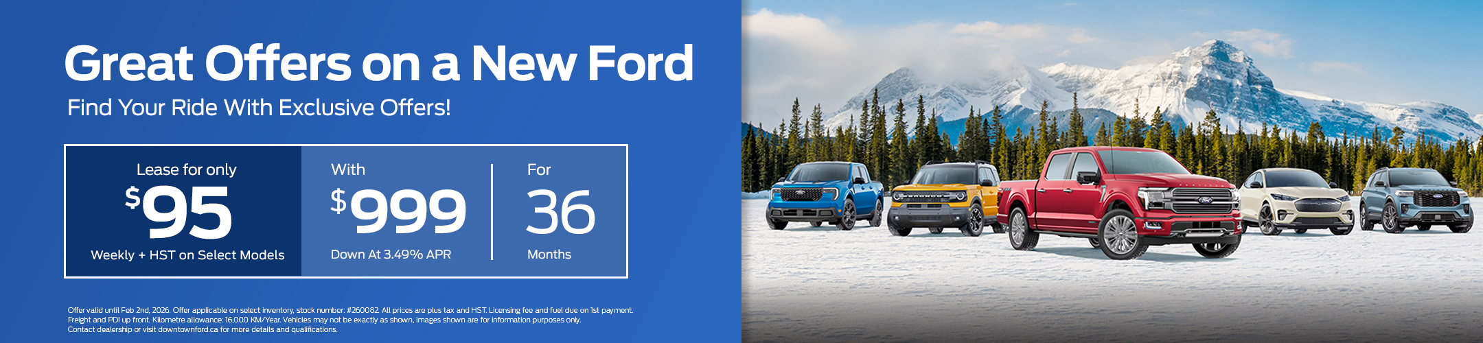 Offers valid until Feb 2nd, 2026. Vehicles may not be exactly as shown, images shown are for information purposes only. Offer valid on select inventory, stock number: #260082. All prices are plus tax and HST. Licensing fee and fuel due on 1st payment. Freight & PDI up front. Kilometre allowance: 16,000 KM/Year. Images shown are for information purposes only. Contact dealership for additional details and qualifications.